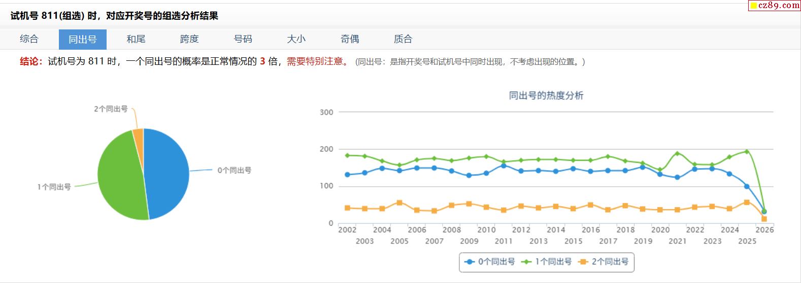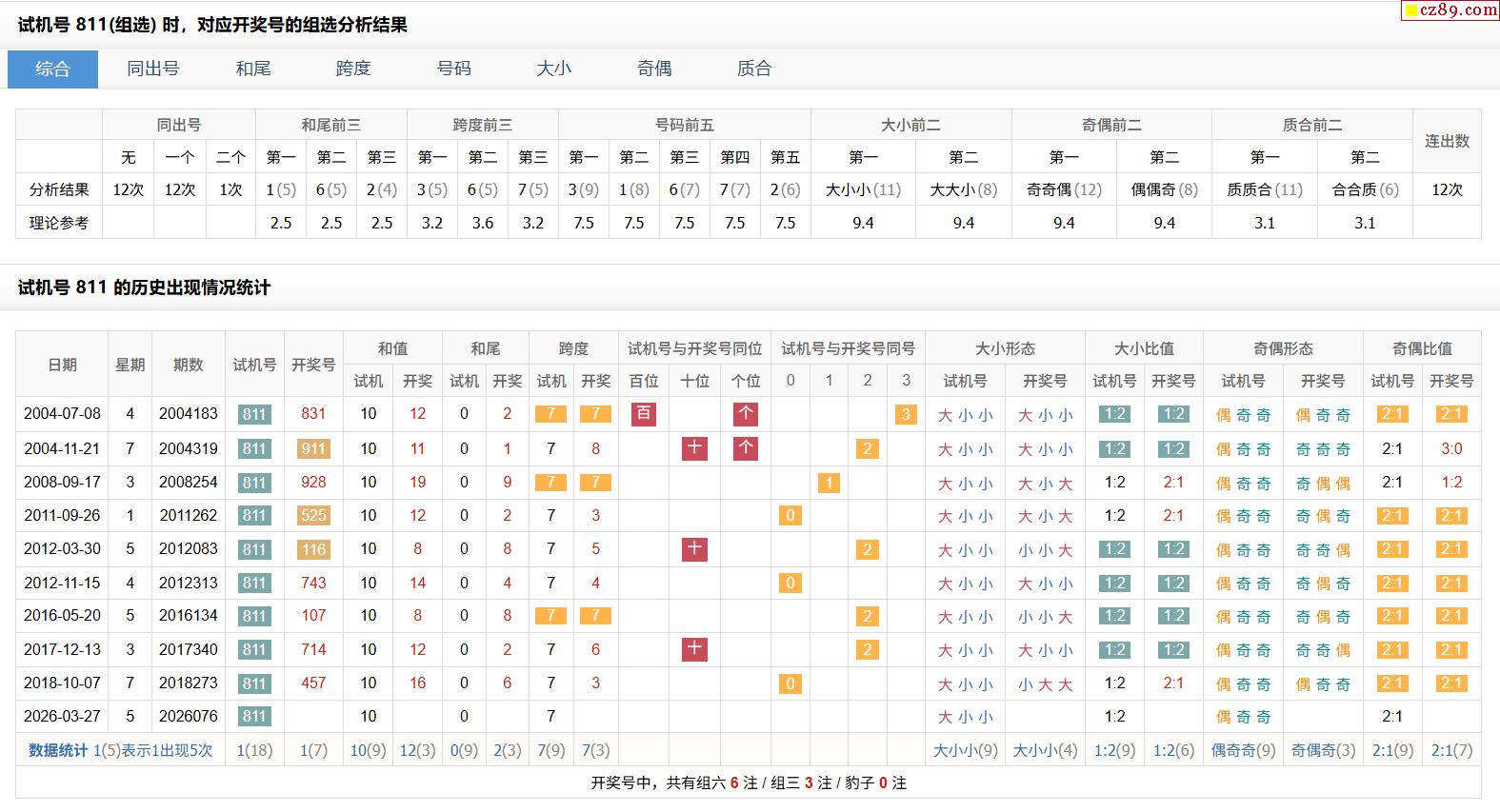 > 076期福彩3D试机号811对应开奖号的组选分析结果